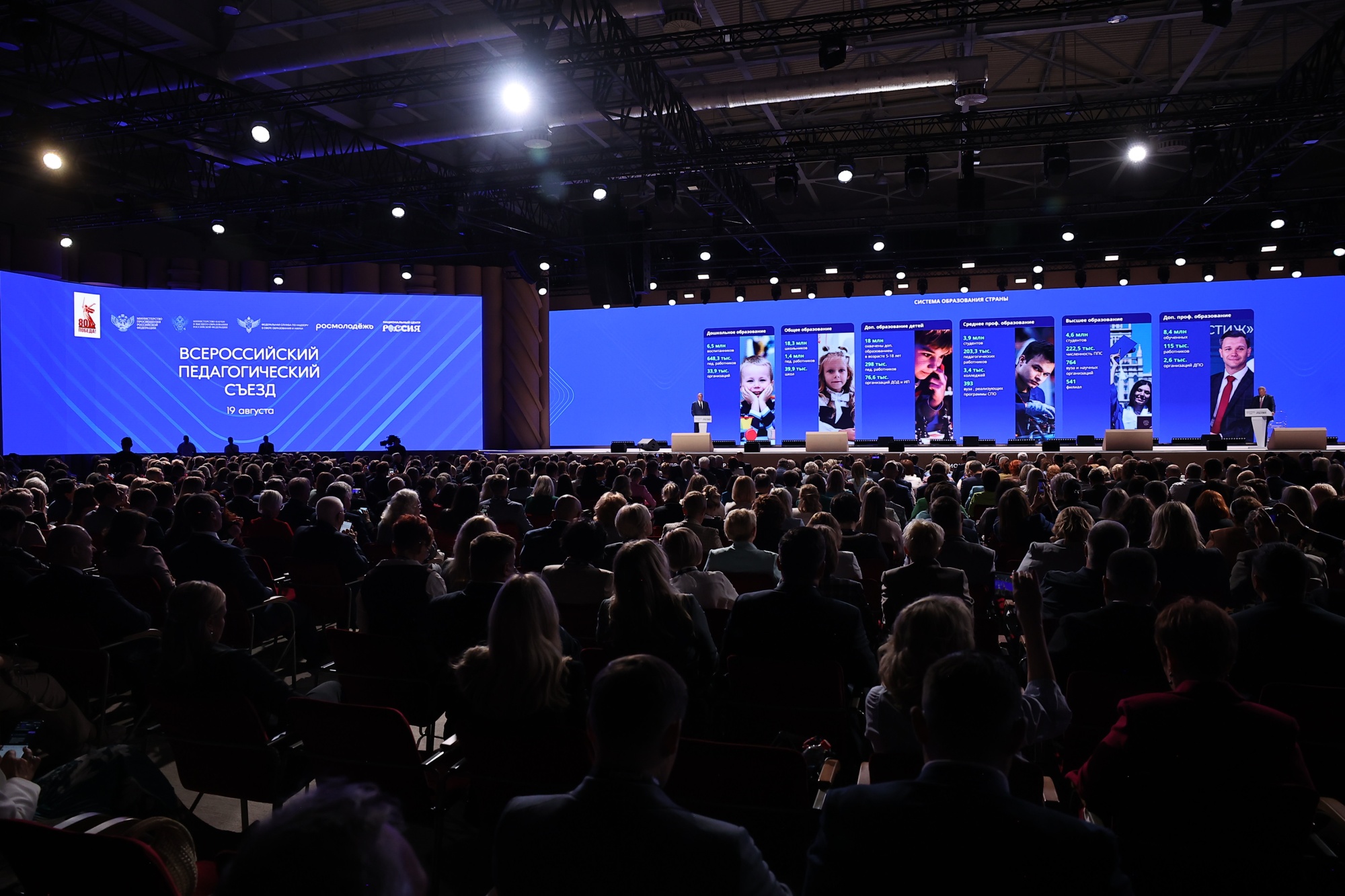 19 августа в Национальном центре «Россия» проходит Всероссийский педагогический съезд. Мероприятие объединило порядка 1 300 педагогов из всех регионов страны, ученых Российской академии образования и Российской академии наук, депутатов Госдумы и сенаторов, представителей органов исполнительной власти и общественных организаций.