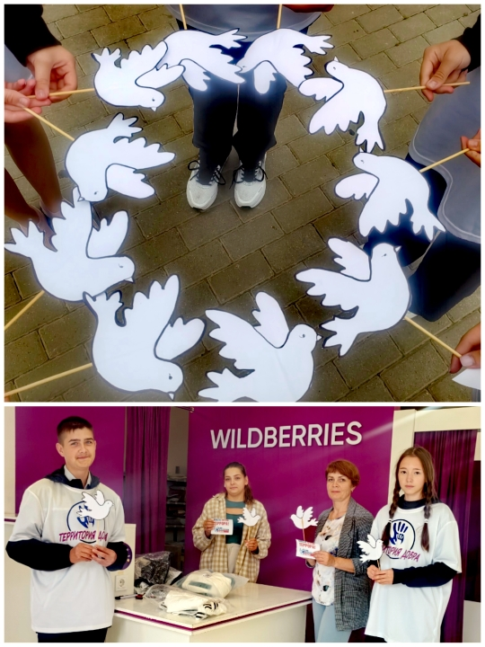 В преддверии мероприятия участники изготовили бумажных голубей – символ мира и надежды. Эти птицы, вдохновляющие на миролюбивые поступки и стремление к спокойствию, стали центральным элементом акции.