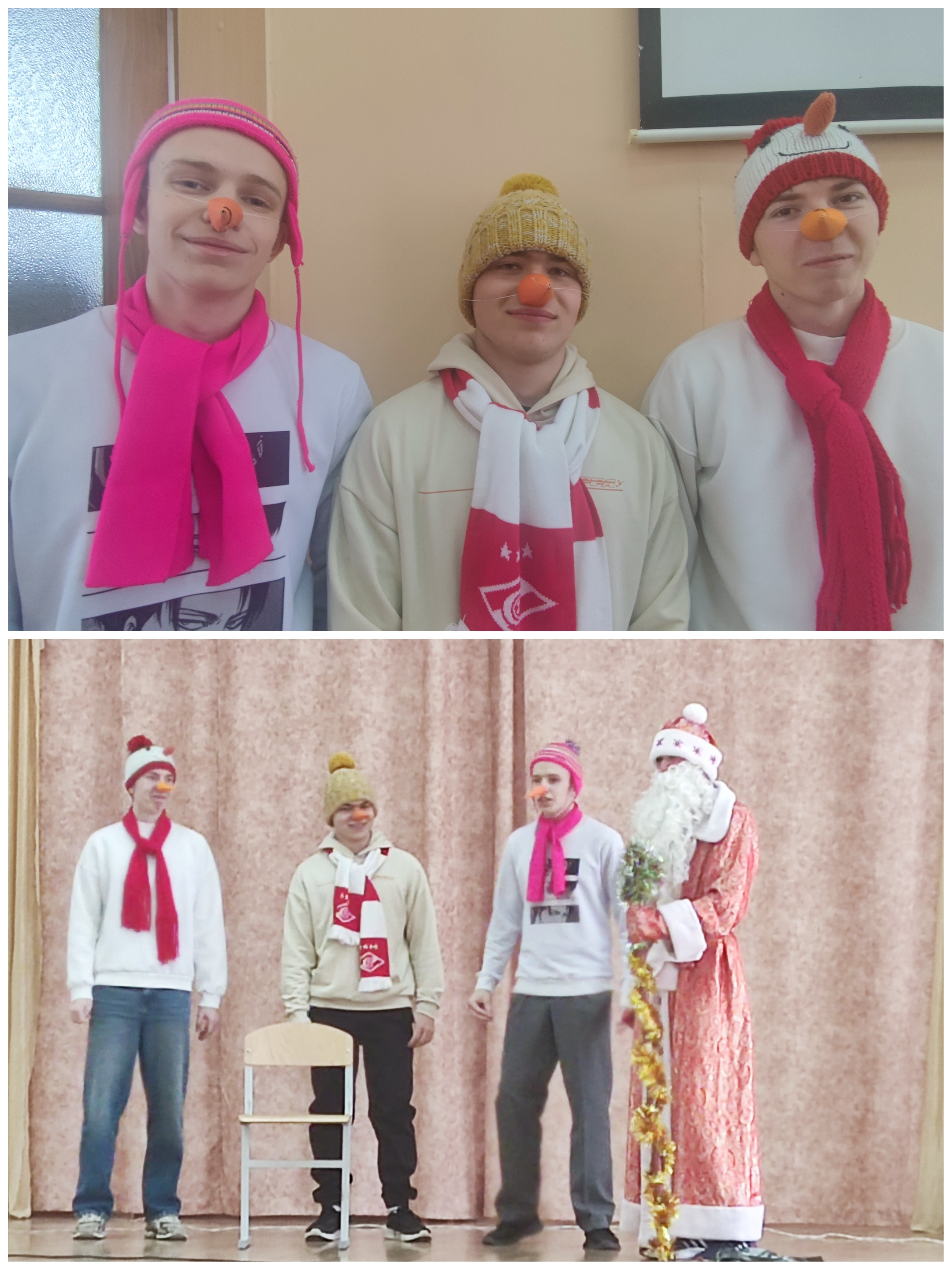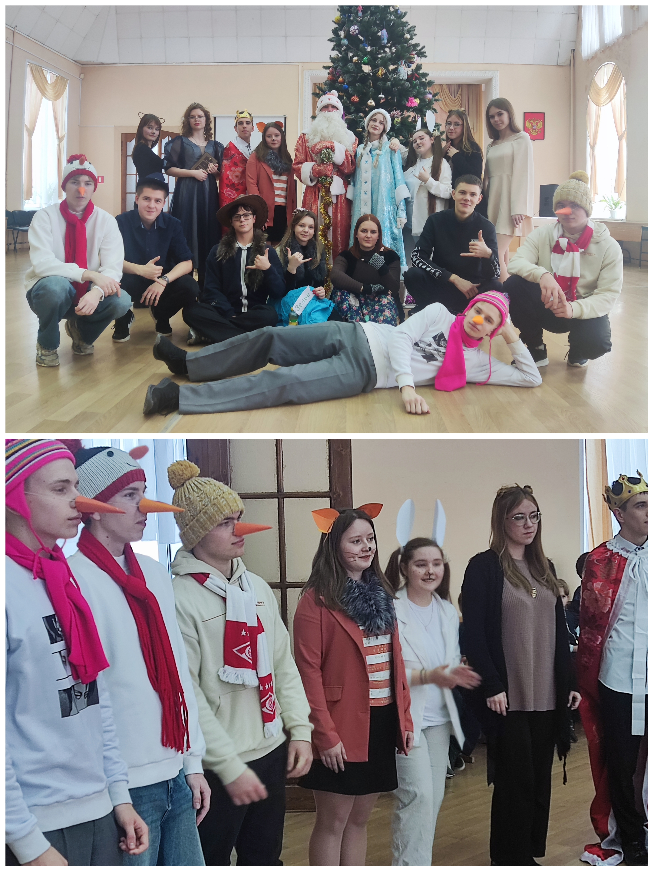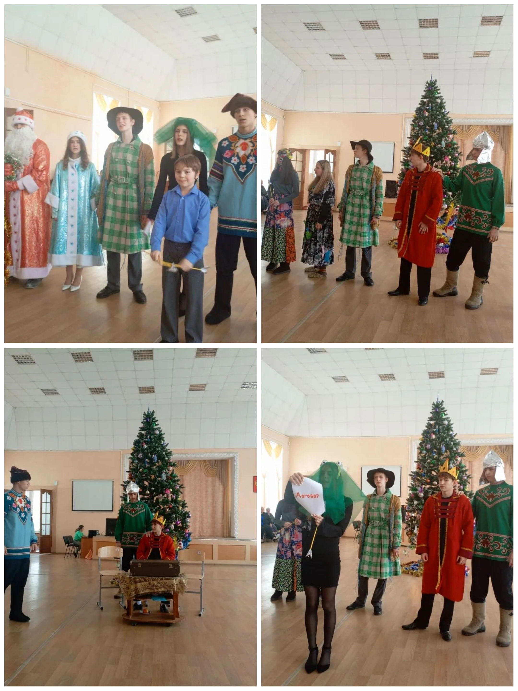 Для старшей школы гимназисты выпускного класса подготовили поучительную историю о том, как в Новый год праздник оказался под угрозой из-за происков разбойников, которые похитили Снегурочку и требовали выкуп с Деда Мороза, а в царской семье чуть не сорвалась свадьба одной из дочерей. Но добро в итоге победило и торжество состоялось.